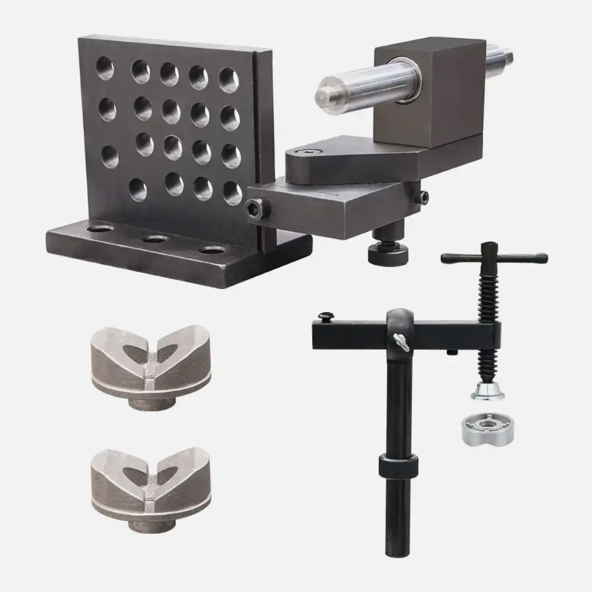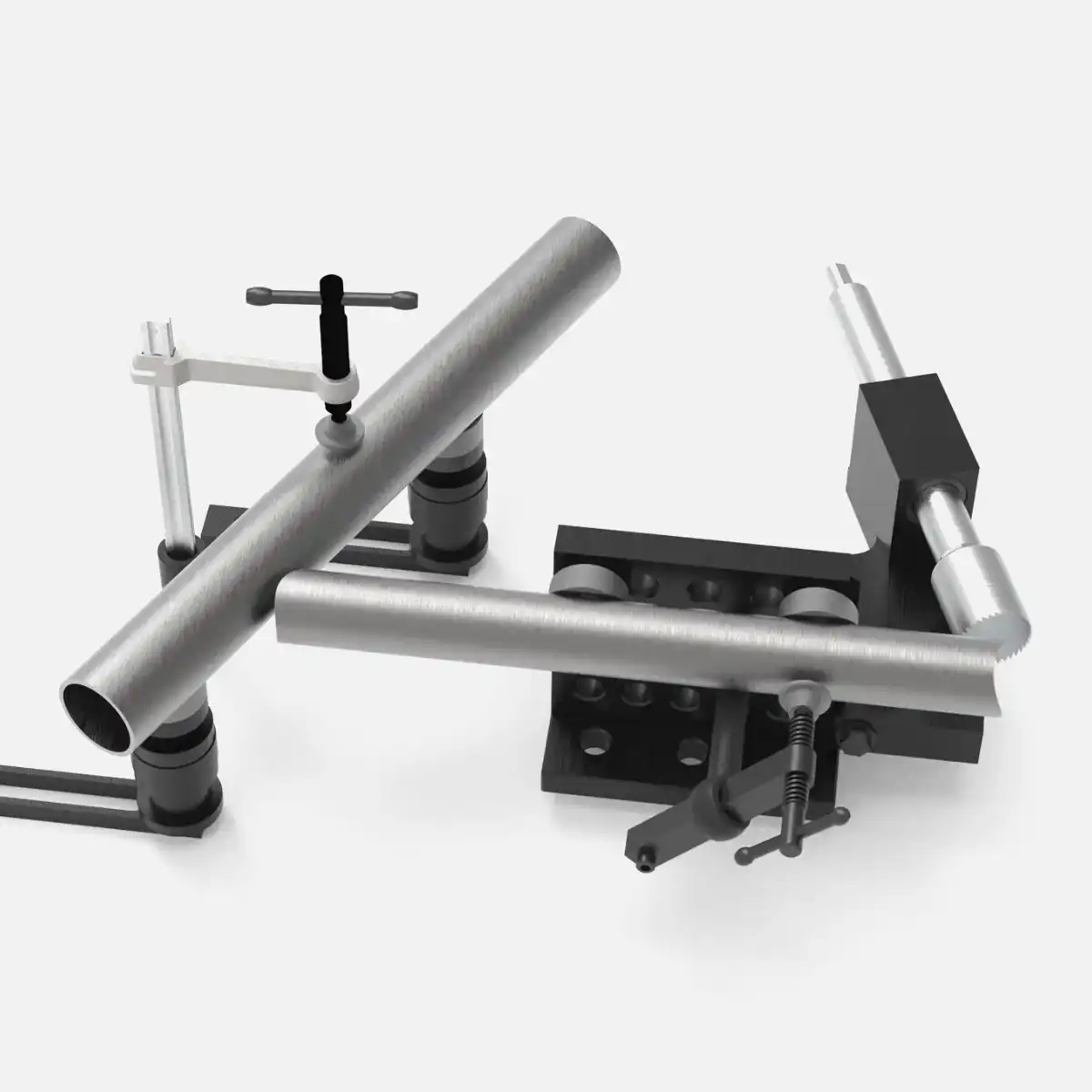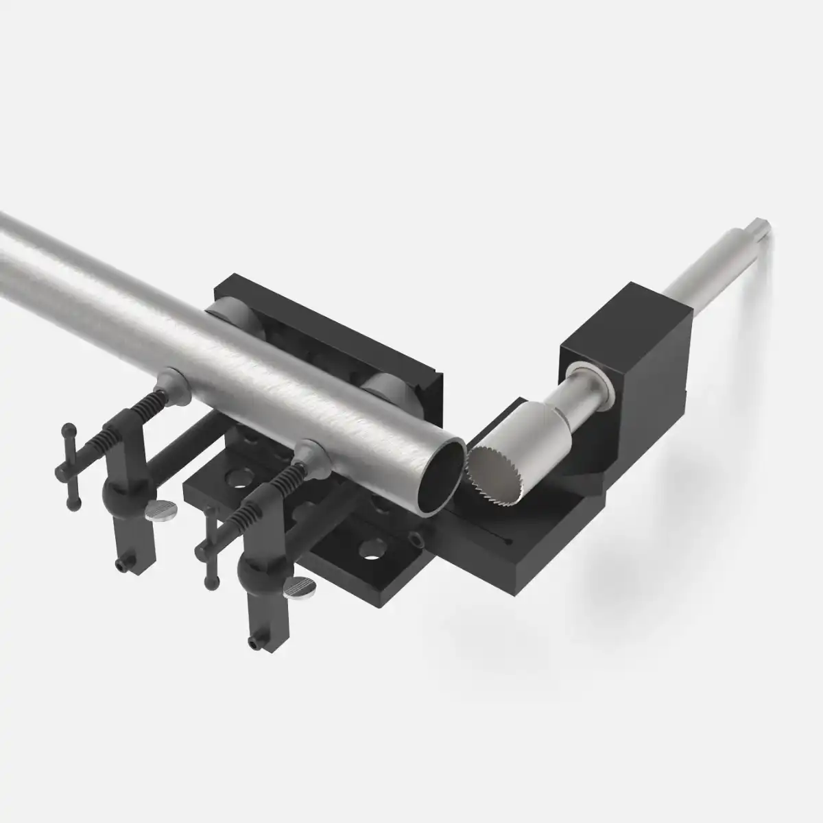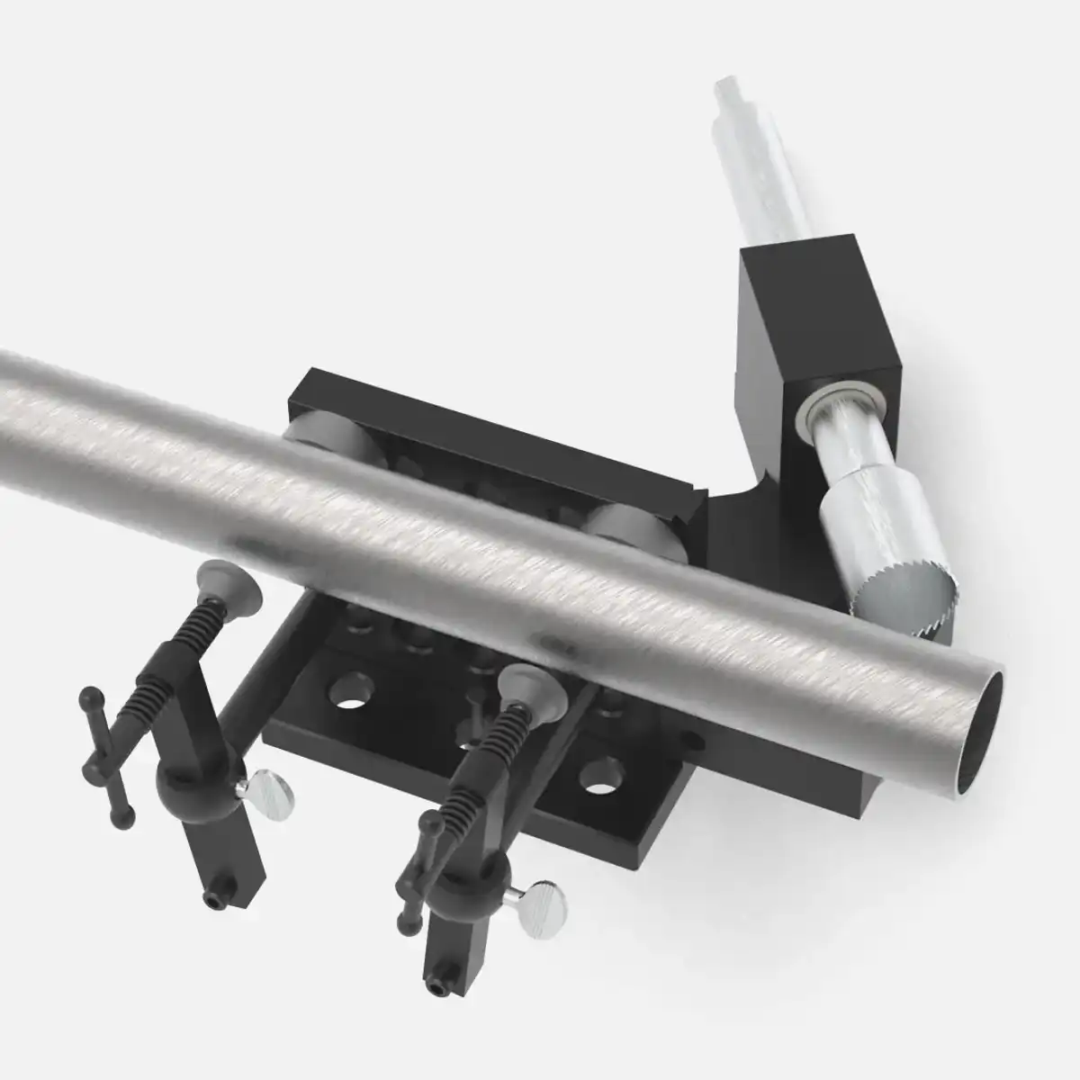 Kis átmérőjű csövek tetszőleges szögű és helyzetű áthatásainak marására alkalmas készülék, amely hegesztőasztalra szerelve vagy önállóan is használható. A munkadarab a tartozék prizmák és a T-rudas szorító segítségével rögzíthető. A megunkáláshoz szükséges gépi meghajtást és vágószerszámot a csomag nem tartalmazza.