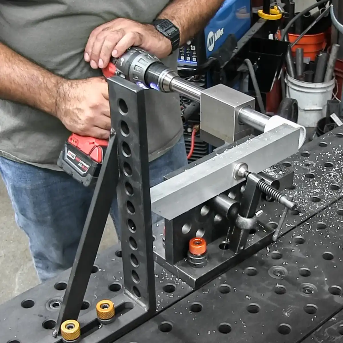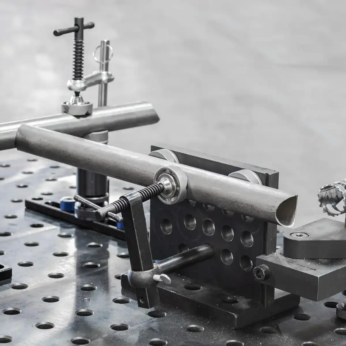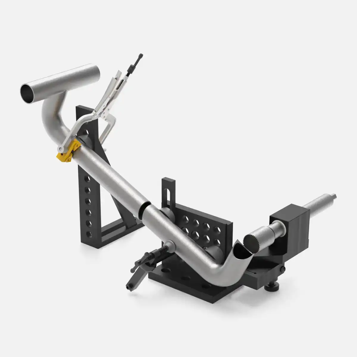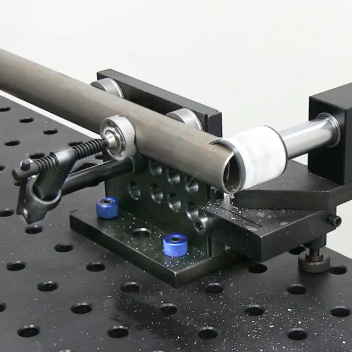 Kis átmérőjű csövek tetszőleges szögű és helyzetű áthatásainak marására alkalmas készülék, amely hegesztőasztalra szerelve vagy önállóan is használható. A munkadarab a tartozék prizmák és a T-rudas szorító segítségével rögzíthető. A megunkáláshoz szükséges gépi meghajtást és vágószerszámot a csomag nem tartalmazza.