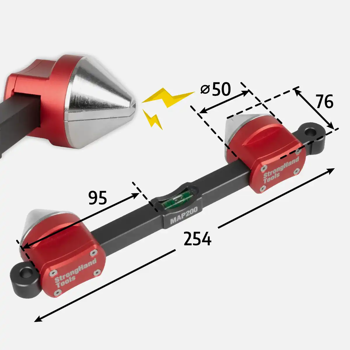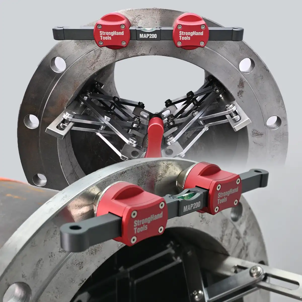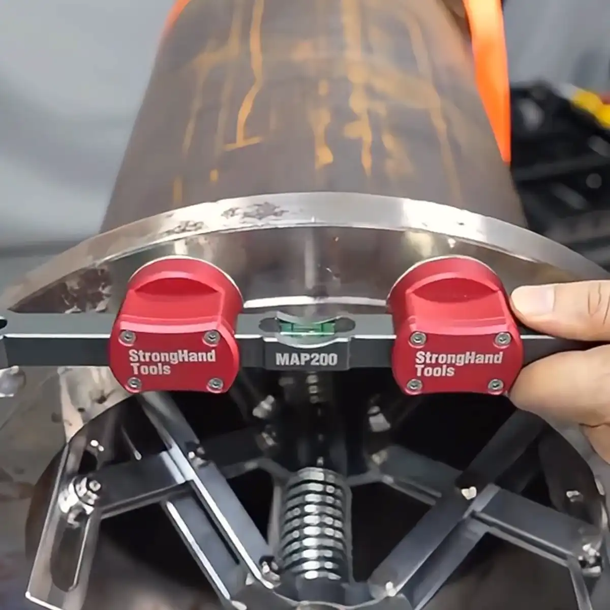 Csőkarimák furatképének hegesztés előtti beállítására alkalmas eszköz. A vízmértéket a kúpos tájolócsapokba beépített erős mágnesek igazítják a karima furataihoz. Rögzítőcsavar nélküli megoldás, így kesztyűben is kényelmesen kezelhető.