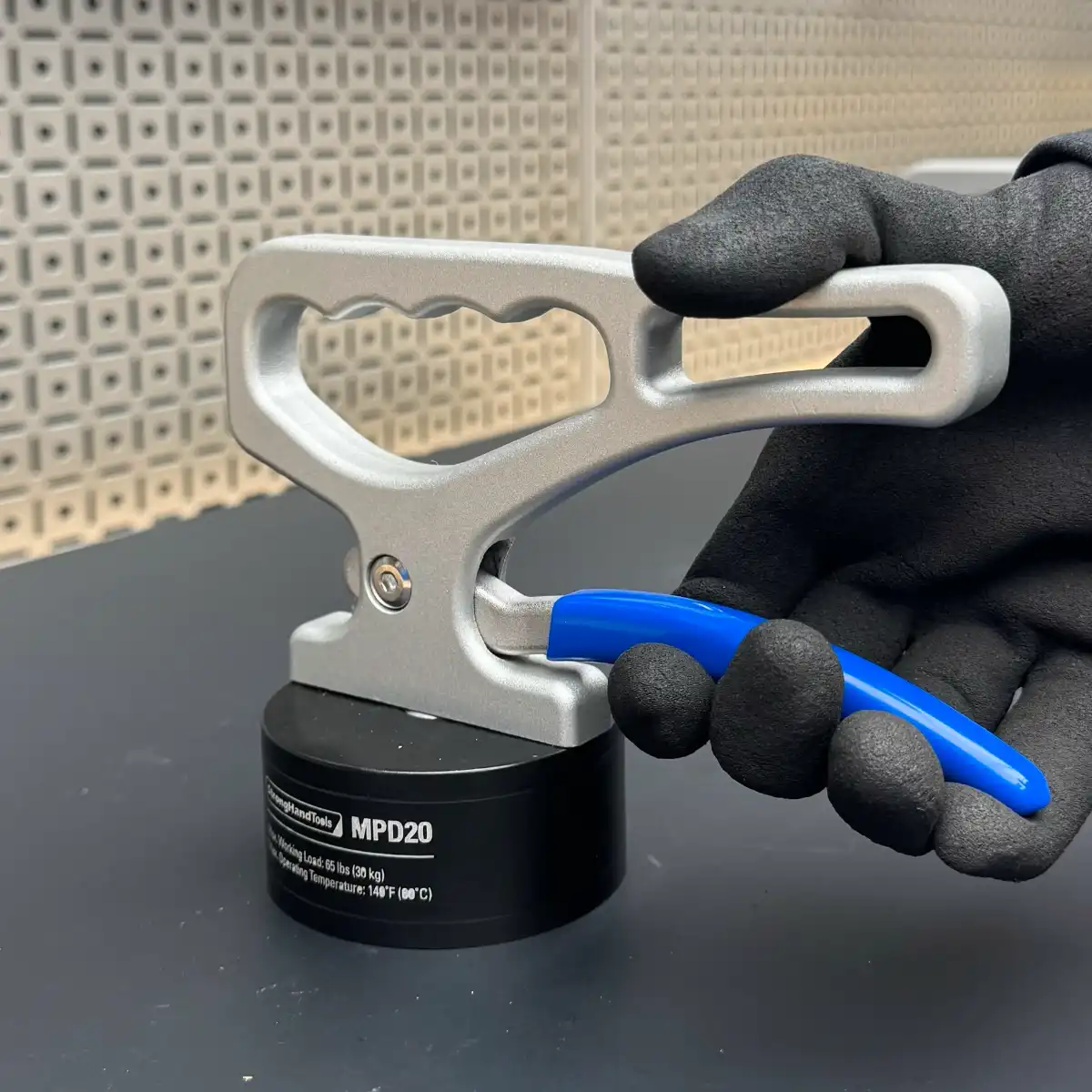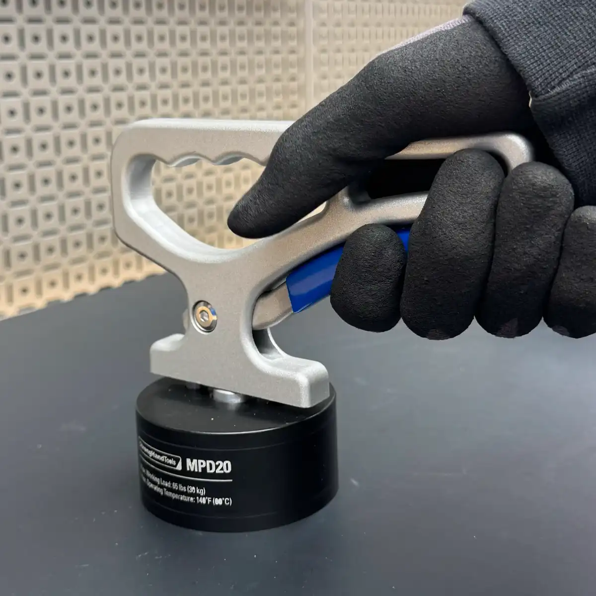 Legfeljebb 30 kg tömegű lemezek, síkszerű, túlméretes vagy nehezen mozgatható munkadarabok emelésére alkalmas mágnes. Különösen hasznos előmelegített vagy frissen vágott, meleg munkadarabok biztonságos mozgatásához. A kioldókar könnyű leválasztást tesz lehetővé.